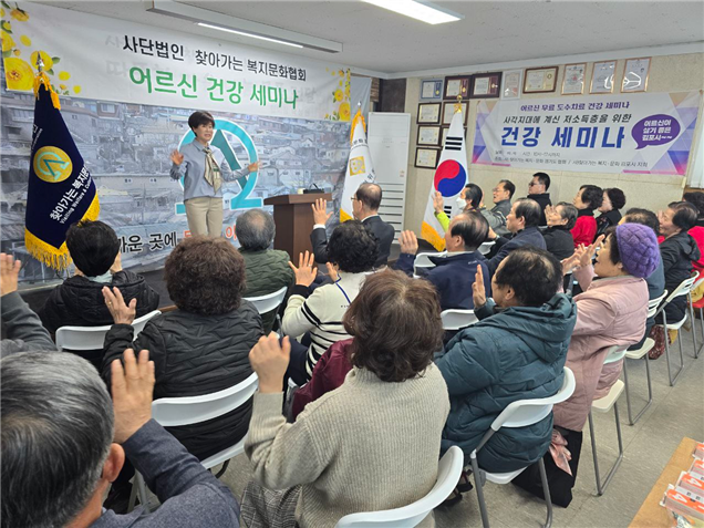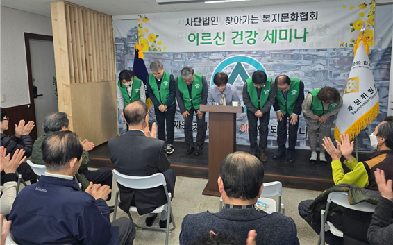 -2024년 3월 12일 화요일 찾아가는 복지문화협회에서 저소득층 어르신들을 위한 건강 세미나를 개최하였습니다. 찾아가는 복지문회 협회장(박성현)님이 개최한 이유는 건강한 몸과 마음을 어르신들게 선사하고자 열었습니다. 강사로는 협회에 후원 위원장이신 지화령 강사님께서 세미나를 진행해 주셨습니다.